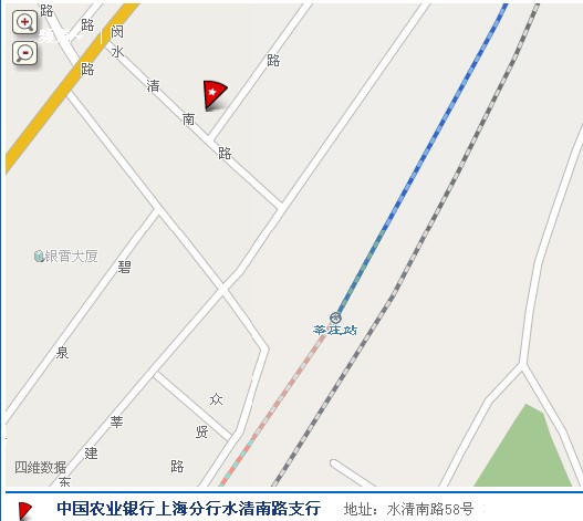 可乘坐地铁1或5号线莘庄站北广场出站,至水清南路58号农行闵行支行