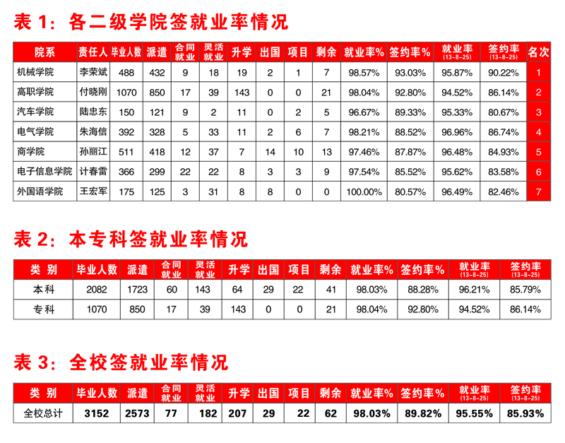 2014届毕业生就业情况统计排行榜(截止8月25日)