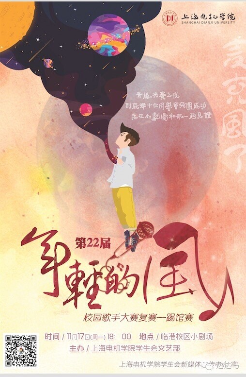 | 临港校区 小剧场 | “麦克‘风'了”第二十二届“年轻的风”校园歌手大赛(踢馆赛) 主办:校团委、学生会