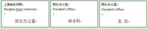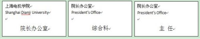 3、科室牌中间正文由二级单位按要求自行决定内容,可选用部门全名、部门三级机构全名(部门功能用房)或部门负责人称谓及部门功能用房。其他非标准内容概不接受。左上第一行由校办根据内容统一确定。详见下例: