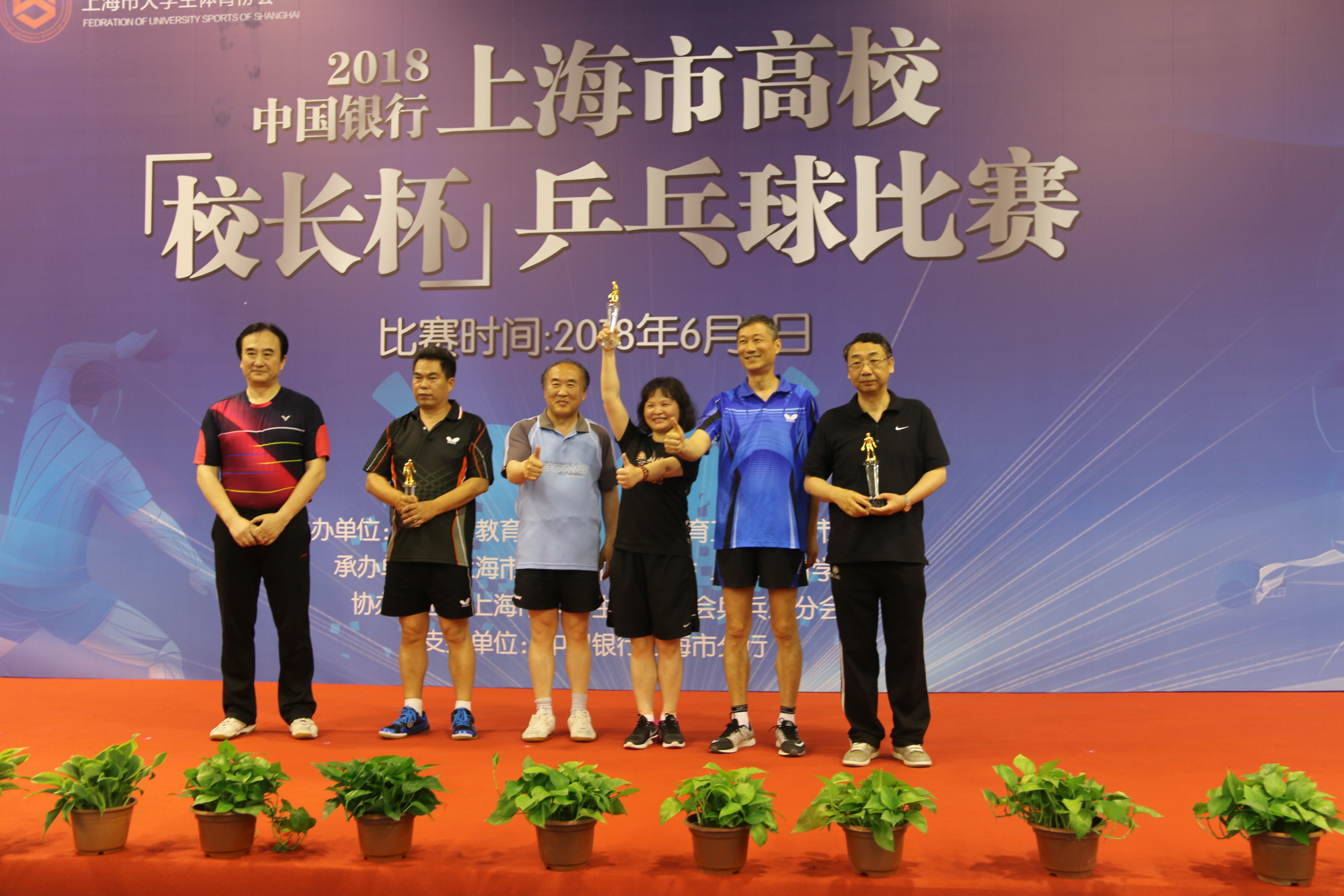 6月2日,由上海市教委、上海市教育工会、中国教育工会上海市委员会举办的上海市“校长杯”乒乓球比赛在上海体育学院举行,报名参加的19所高校分成五个队,进行小组赛和淘汰赛。由我校校长胡晟、党委副书记陈信、副校长陈东辉和总会计师张川组成代表队蝉联冠军。