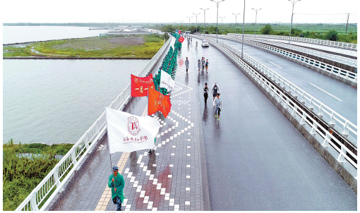 本报讯 (记者 符佳)9月9日,临港滴水湖畔出现了一支300人的“绿色军团”:上海电机学院2018级新生代表披着绿色雨披,绕这个上海最大的人工湖一圈,冒雨完成了9公里的“环滴水湖拉练”。这也是临港大学城里的大学首次举办环湖军训拉练活动。