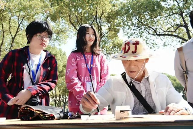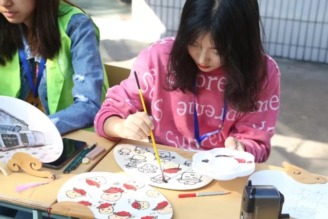设计与艺术学院师生在报到点旁设置的创意集市摊位,为老校友们提供了丰富多彩体验活动。很多酷爱书法的校友在体验书法的摊位上一展身手,引得一片掌声。创意画也十分有趣,校友们纷纷选择自己喜欢的素材在志愿者的帮助下于草帽、纸扇、小灯笼上作画。速写肖像摊位也受到了大家的高度关注,来自设计与艺术学院专业的画手们为老校友们绘制了速写肖像,精湛的技术得到了大家的夸奖。学生双创产品义卖摊位上的每一件产品都是设计与艺术学院的学生在老师的指导下设计制作的,背后有着与学校息息相关的历史内涵,许多校友纷纷驻足观看并购买留念。