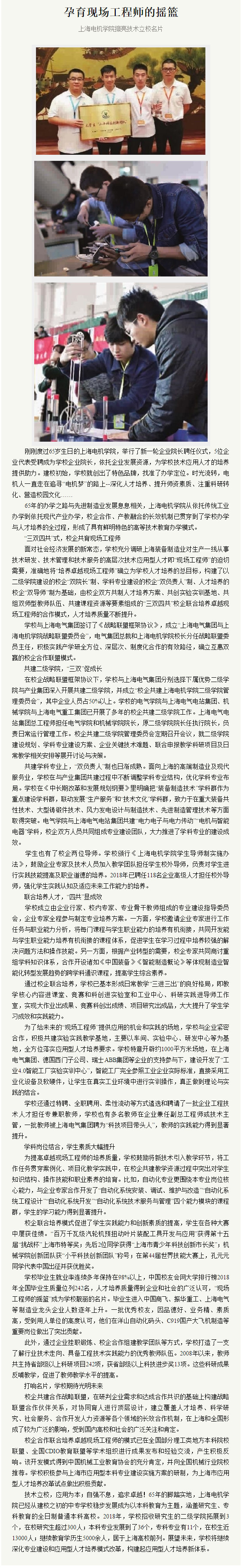 【新民晚报】孕育现场工程师的摇篮
