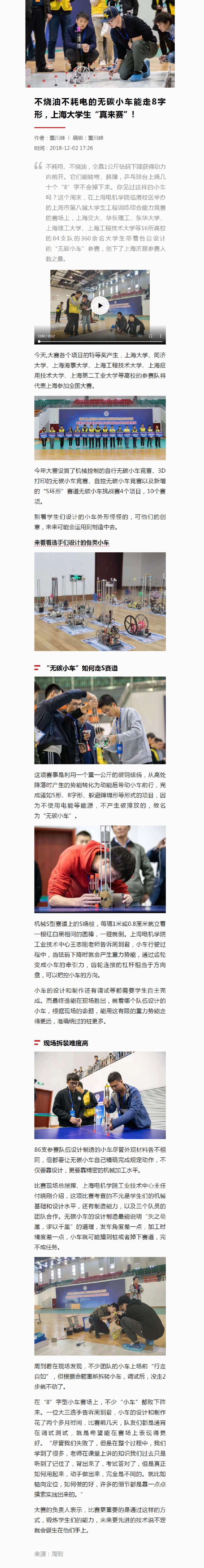 【周到】不烧油不耗电的无碳小车能走8字形,上海大学生“真来赛”!