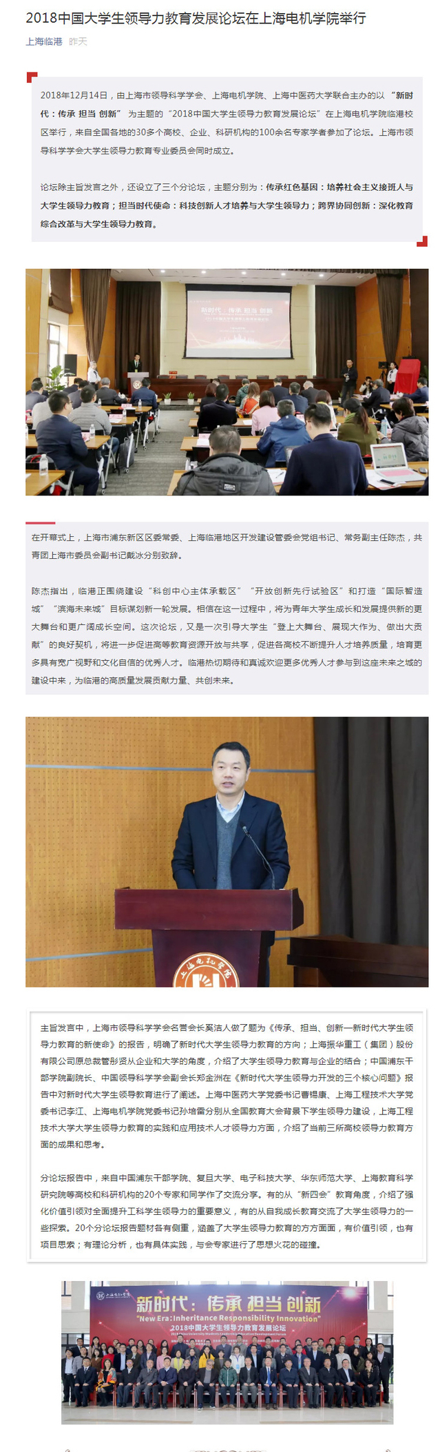 【上海临港】2018中国大学生领导力教育发展论坛在上海电机学院举行