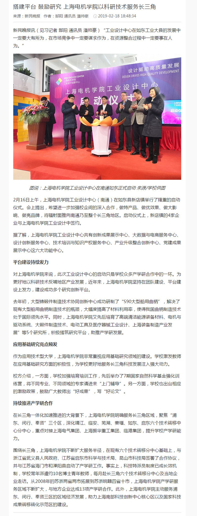 【新民晚报】搭建平台 鼓励研究 上海电机学院以科研技术服务长三角