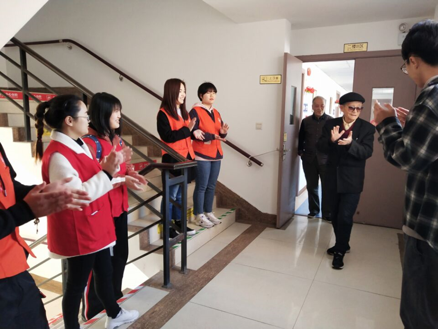 在养护院管理员的指导帮助下,志愿者被随机分为四组。同学们协助养护院护理阿姨打扫卫生,利用废旧的报纸,有序细心地擦着养护院走廊的每一扇窗户,认真地负责好各自楼层的任务。同学们希望自己的这份微薄之力可以为养护院的老人们营造一个干净温馨的生活环境。清洁工作结束后,志愿者们陪同老人们聊天下棋,倾听老人们的故事。