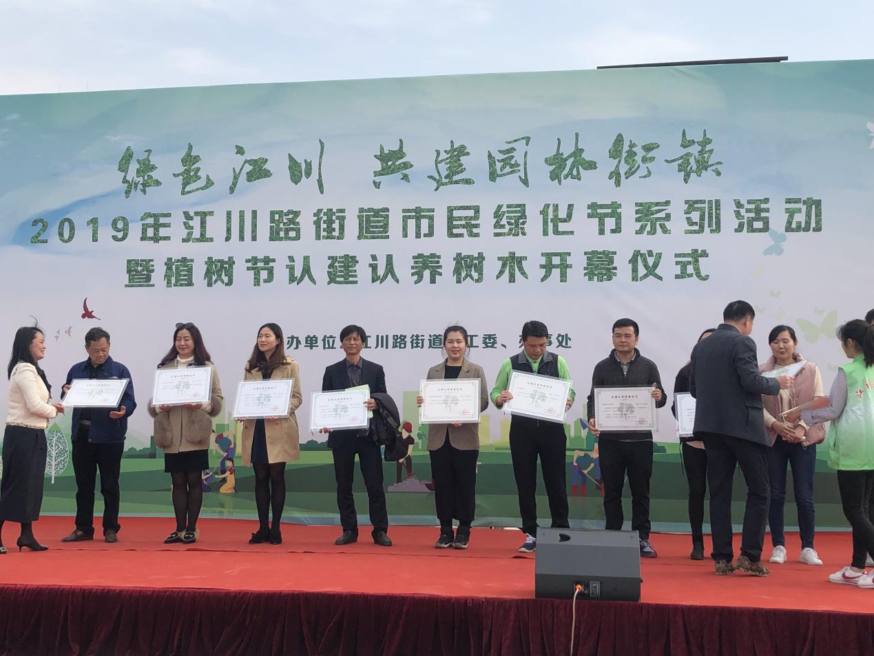 启动仪式上我院很荣幸收到本次活动颁发的认建认养证书。其后的植树现场,志愿者们积极协助相关部门为植树现场撒上第一铲土。经过两个多小时的奋战,100棵树苗渐次成型,迎风挺立,成为了绿地上一道亮丽的风景线。