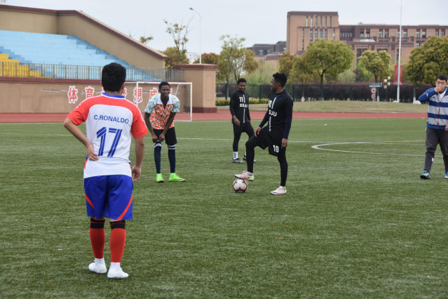 4月16日下午,由电气学院组织的中外学生足球友谊赛在临港校区大操场举行。