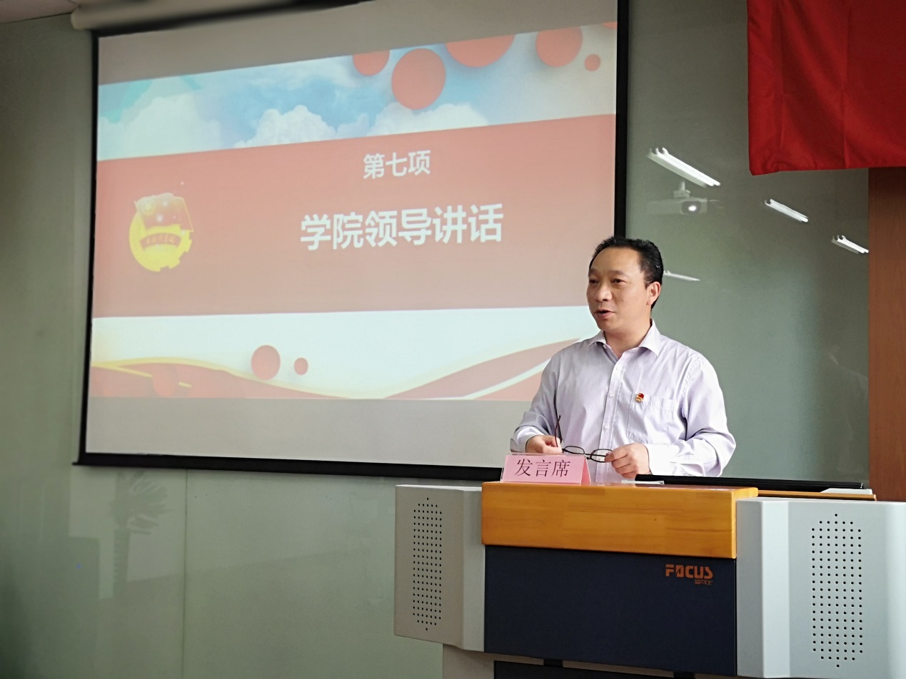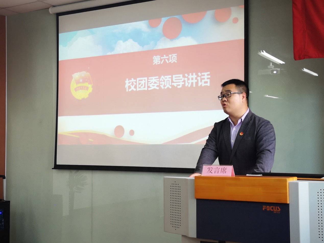 卞一明书记代表学院党总支发表讲话。他指出,学院成立三年来,学院广大团员青年在直属党支部的领导下,以十九大精神和习近平新时代中国特色社会主义重要思想为指引,以“服务大局、服务青年”为宗旨,以育人为目标,不断加强自身建设,广泛开展了各种内容丰富、健康向上的活动,在促进校风学风建设,丰富校园文化生活,提高精神文明建设水平等方面做了大量卓有成效的工作。他向学院团组织提出三点希望:一是以培养具有创新精神和实践能力的高素质人才为己任,不断改革创新,积极探索新形势下我校共青团工作的新思路;二是不断繁荣校园文化,大力推动校园精神文明建设;三是要切实加强自身建设,不断增强凝聚力和战斗力,勤奋学习,扎实工作,务实创新,努力开创我院共青团工作的新局面。