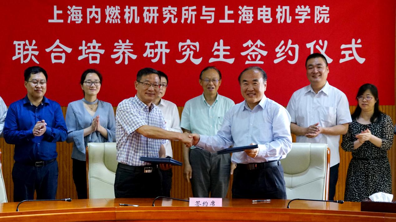 首先,陈东辉副校长对此次联合培养研究生的工作做了介绍,随后胡晟校长与上海内燃机研究所代表刘斌签署了研究生联合培养协议,并合影留念。根据协议,双方充分发挥学科、科研优势,更好地实现高校与科研院所之间的优势资源共享,提高高层次应用型人才培养质量,积极开展硕士研究生双向联合培养工作。