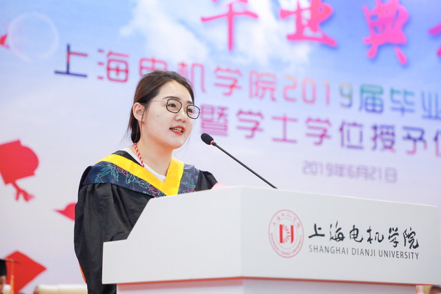 来自电子信息学院的毕东媛同学作为毕业生代表分享了自己在母校的点点滴滴。她说,这里是梦想起航的地方,也是自己展翅高飞的地方,“明德至善,博学笃行”是学校教给我们最重要的一门必修课,“自强不息,追求卓越”是学校对我们乘风破浪的无限希冀和殷殷嘱托。