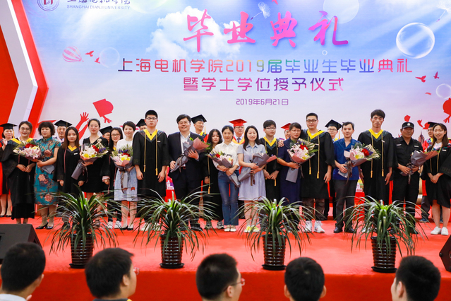 大会宣读了2019届上海电机学院特别贡献奖表彰名单、上海市优秀毕业生名单、校级优秀毕业生名单、校级留学生优秀毕业名单、优异学士学位论文Top1%名单,主席台领导为获奖学生代表颁奖。今年学校共有152名同学荣获上海市优秀毕业生;326名同学荣获校级优秀毕业生;6名留学生荣获校级优秀留学毕业生,26篇毕业生论文荣获优异学士学位论文(TOP1%)奖。党委书记孙培雷为2019年新疆自治区专招内地高校毕业生毕东媛,2019年西藏自治区专招内地高校毕业生刘莉、杨克莉等三位同学颁奖,并向他们表示衷心的祝贺。