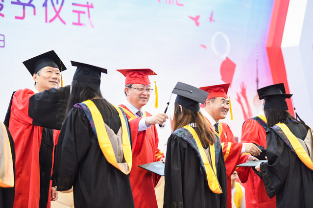 在响彻全场的热烈掌声中,2019届毕业生毕业典礼宣告结束。今日的毕业,是离别,也是新的开始,是大学四年的总结,也是步入社会的象征。愿你们在新的旅途中,自信守信,不忘初心,追求卓越,努力奋斗,向着明天迈步前行!(潘帅豪)