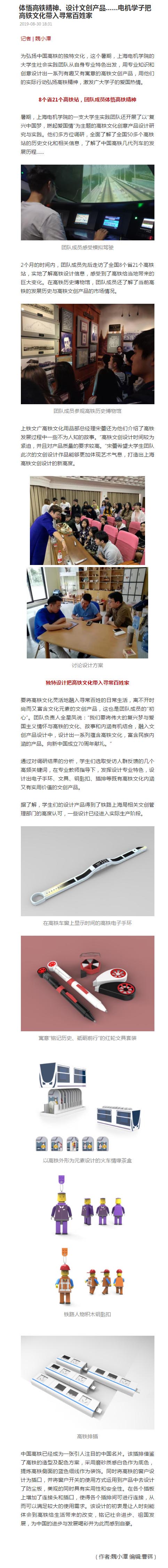 【第一教育】体悟高铁精神、设计文创产品……电机学子把高铁文化带入寻常百姓家