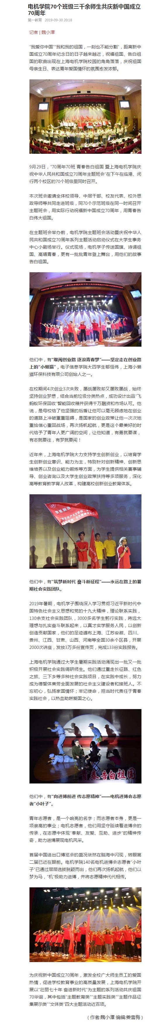 【第一教育】电机学院70个班级三千余师生共庆新中国成立70周年