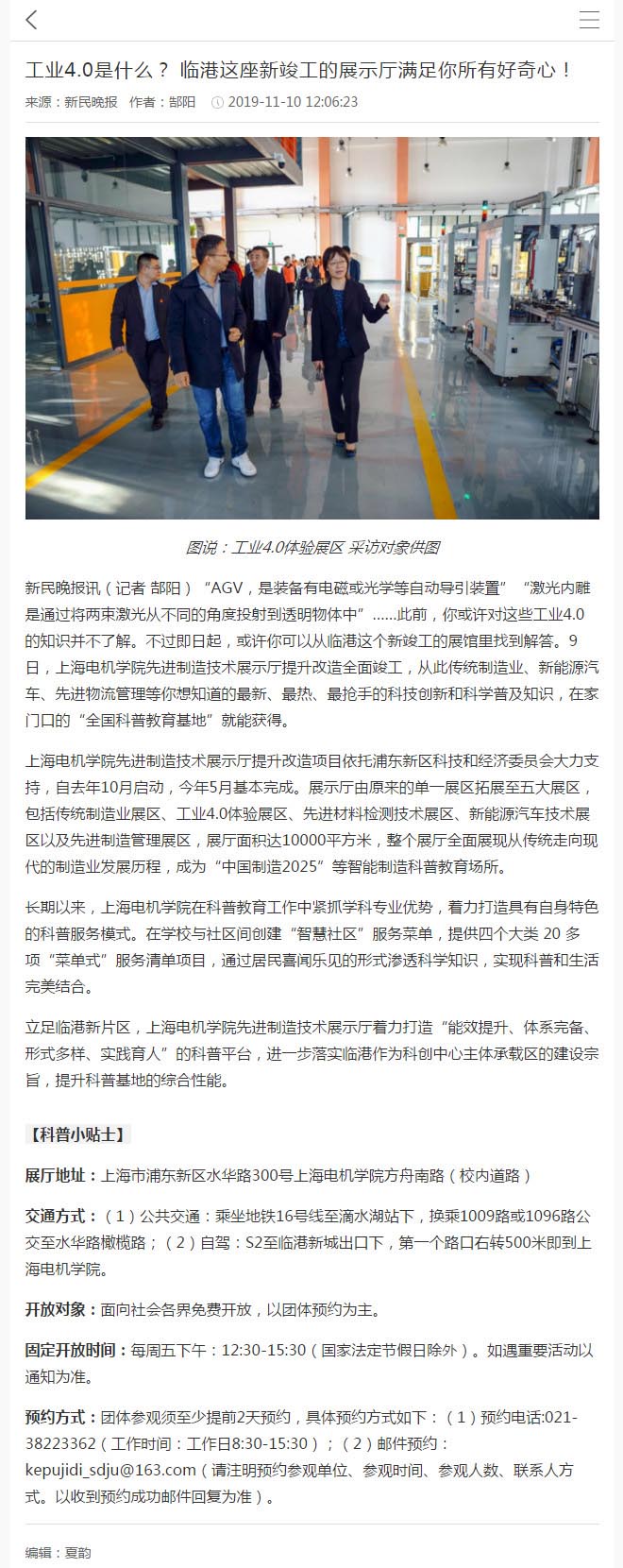【新民晚报】工业4.0是什么? 临港这座新竣工的展示厅满足你所有好奇心!