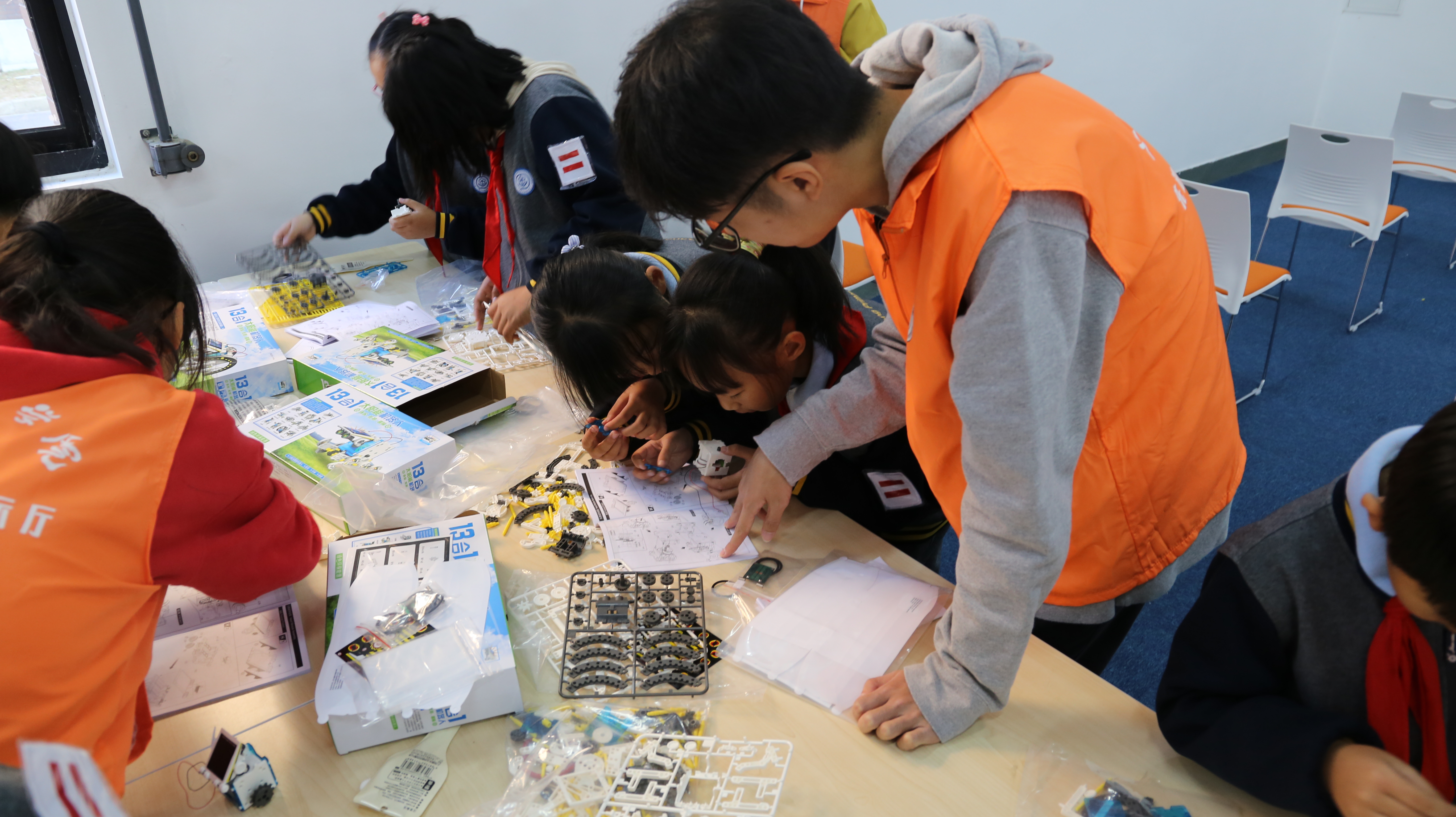 来自浦东新区建平临港小学的学生们在展示厅互动体验区里,在志愿者们的指导下,制作太阳能机器人、3D打印,与机械手臂互动,从动手实践中学习科普知识。