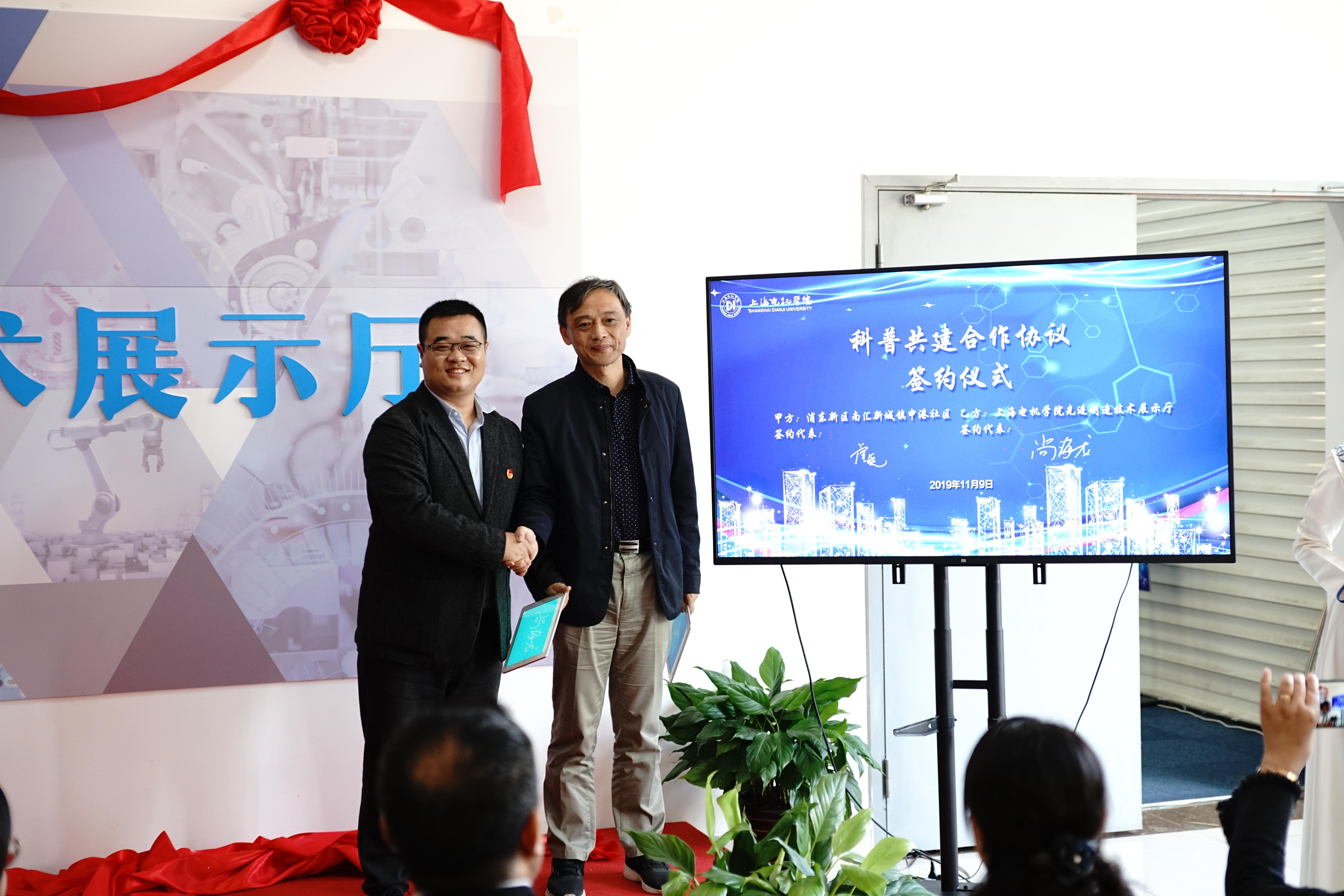 徐敏栩副主任与李晓军副书记共同为上海电机学院先进制造技术展示厅揭牌,这也标志着学校科普服务平台日益完善,临港新片区在先进制造技术方面的科普教育能级逐渐提升。