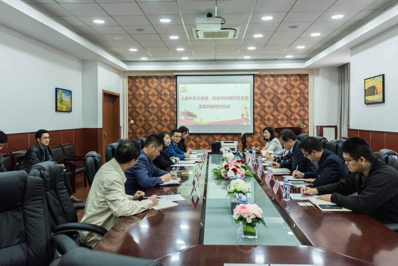 经过较长时间的接洽,在双方深入了解的基础上,11月12日下午,上海中车艾森迪海洋装备有限公司党支部书记、副总经理严允,副总经理欧阳典贵等一行5人来到上海电机学院机械学院,与机械学院第四党支部签订了共建协议。