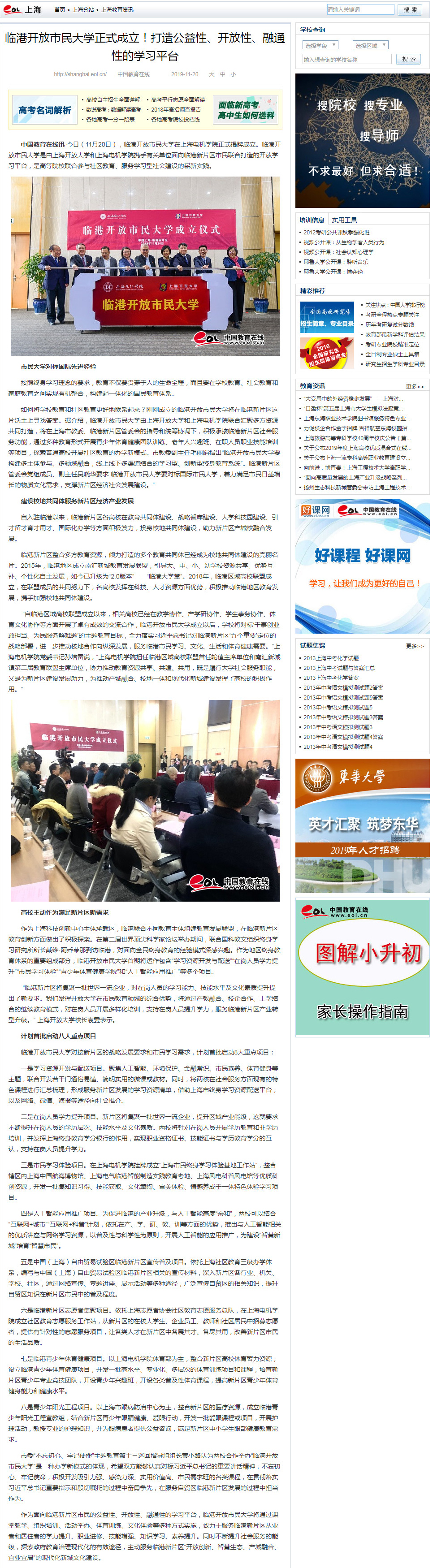【中国教育在线】临港开放市民大学正式成立!打造公益性、开放性、融通性的学习平台