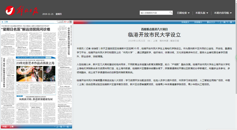 【解放日报】首期重点推进八大项目 临港开放市民大学设立