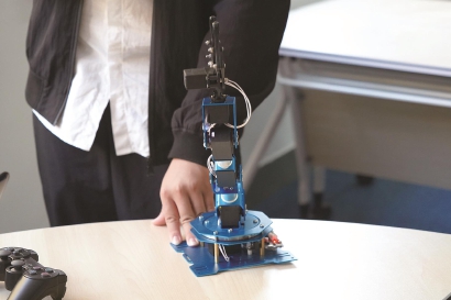 “先进制造管理展区的互动性比较强。孩子们可以在这里体验机器人DIY、3D打印和机械手臂等。”展区负责人介绍,“遇上晴天,他们还可以将自己组装的太阳能小型机器人带到户外实践一番。”