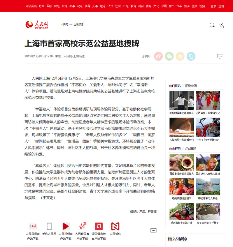 【人民网】上海市首家高校示范公益基地授牌