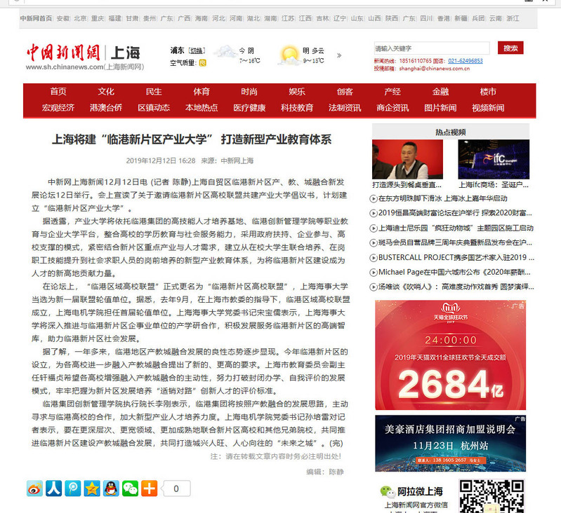 【中国新闻网】上海将建“临港新片区产业大学” 打造新型产业教育体系