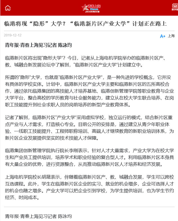 【青春上海】临港将现“隐形”大学?“临港新片区产业大学”计划正在路上