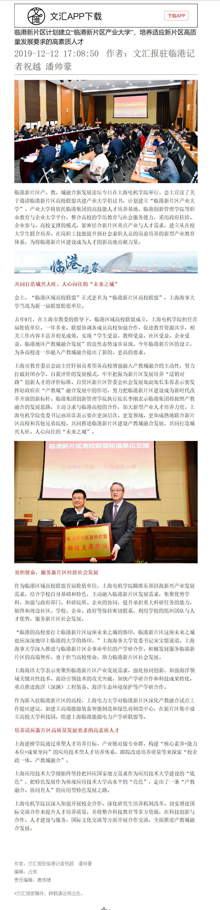 【文汇】临港新片区计划建立“临港新片区产业大学”,培养适应新片区高质量发展要求的高素质人才