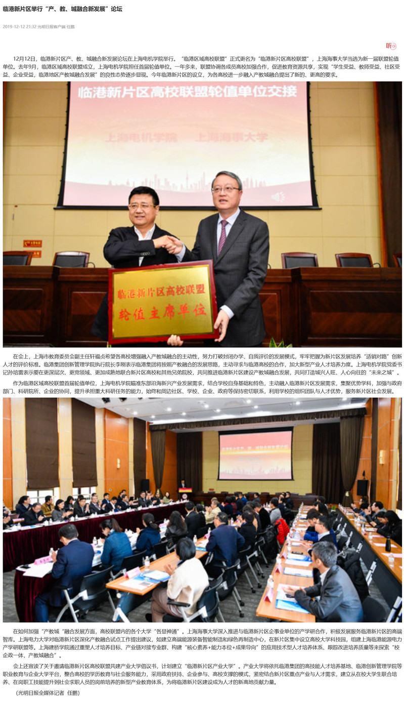【光明日报】临港新片区举行“产、教、城融合新发展”论坛