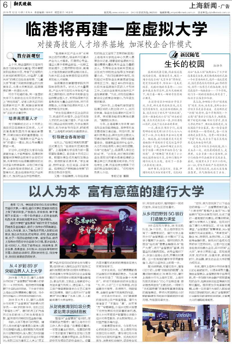 【新民晚报】临港将再建一座虚拟大学 对接人才培养基地 加深校企合作模式