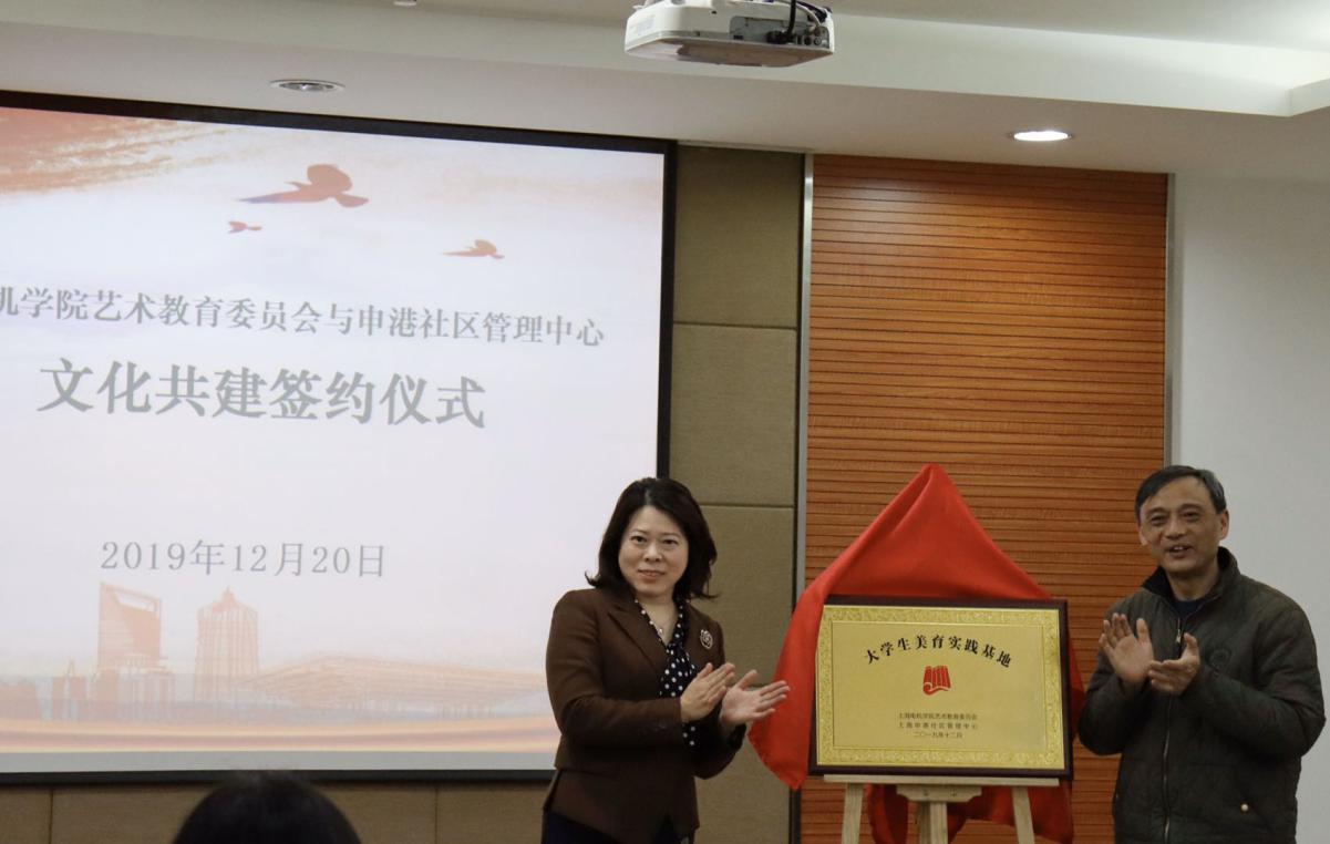 12月20日下午,我校艺术教育委员会与申港社区文化共建签约暨大学生美育实践基地揭牌仪式在申港社区管理中心举行。校党委副书记、副校长李晓军,党政办主任董雪静,党政办副主任林敏芝,艺委会秘书长吉文斌,申港社区党委书记虞尧,申港社区管理中心主任瞿丽红等人出席,仪式由申港社区党委副书记余振东主持。
