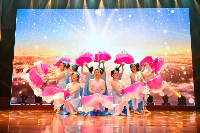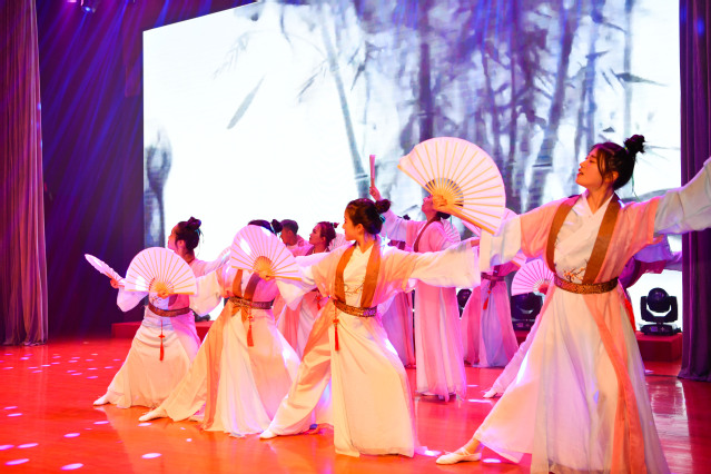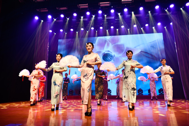 申港社区宜浩佳园二居委舞蹈队也来到现场,为大家带来了祝贺舞蹈《我的祖国》。电机的老师们穿上美丽的旗袍,为大家带来时装秀节目《女人花》,尽情展现老师们的美丽与优雅。
