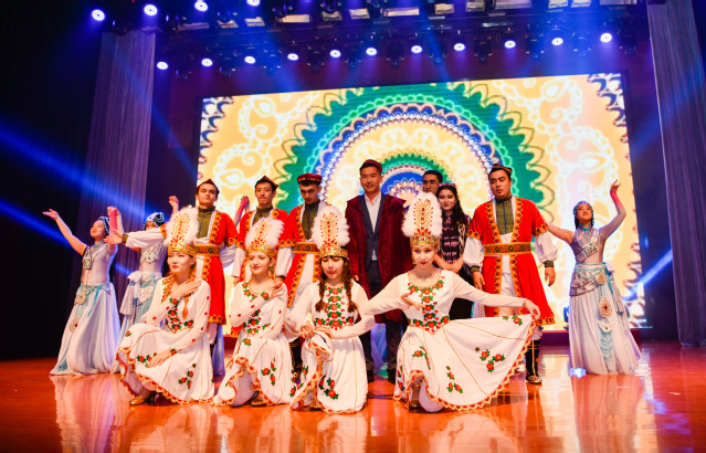 随后,学工部与团委带来舞蹈串烧《民族大团结》,少数民族的师生代表们身着民族服装,为大家献上极具特色的舞蹈,唱响一曲民族团结的赞歌。