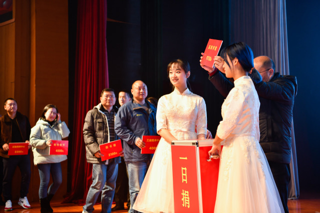 团委带来舞蹈《纸扇书生》,展现大学生的风华正茂。随后的“一日捐”活动中,校领导和各分工会主席上台代表全校教师奉献爱心。“爱心一日捐”活动是学校多年坚持的一个好传统,一点一滴、聚沙成塔,暖心满校园,全体教职工以实际行动尽社会责任,树清风正气,展师表形象,建和谐校园。