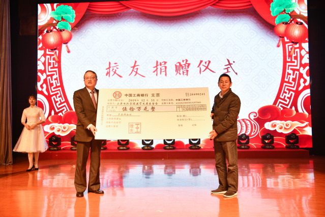晚会上,杰出校友代表、上海逸航汽车零部件有限公司总经理王继光特意回到母校,向母校捐赠50万元。党委书记孙培雷上台接受捐赠并颁发捐赠证书。热心校友们一路关注和支持着母校的发展,为母校聚资、聚智、聚力,这份电机情流淌在校友们的心头,更洋溢在每一位在校电机人的脸庞。