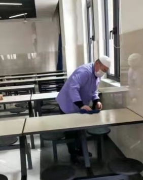 马龙是我校的老员工了,自临港校区启用以来,他就负责我校二食堂民族餐厅的餐饮,努力为全校少数民族学生提供可口的饭菜和优质的服务,如今已经近10年了。“我会做好学校供餐!想办法给留校学生(提供)更好的更可口的饭菜。”马龙是这样说的,更是这样做的。这次疫情正值寒假期间,马龙和民族餐厅的员工坚持留守在学校食堂,为留校的学生提供更丰富的菜色和更美味的饭食,每日不留死角地对餐厅进行消毒,竭尽所能地保障留校学生的用餐环境,全力以赴做好供餐工作。民族餐厅还推出了“预约制”用餐,向留校学生开放。留校学生如果有自己想吃的饭菜,可以提前一天向餐厅预约,餐厅会根据预约需求进行配菜烹饪等,第二天学生就可以在民族餐厅里尝到心心念念的饭菜了。