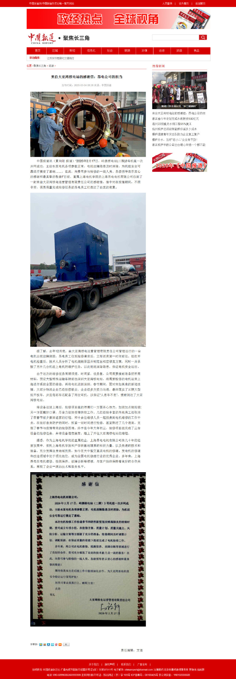 【中国报道】来自大亚湾核电站的感谢信:昂电公司的担当