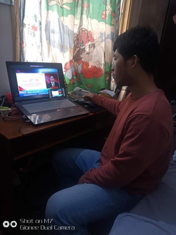 新能源1912 祖力喀尔是一名新疆同学,他说,这次的全国新冠疫情,让无数中华儿女逆行而上。作为大学生,我所能做的就是听从学校指导,听从社区指导,在家做好防控,完成学校老师分配的任务。《全国大学生同上一堂疫情防控思政大课》更是让我们刻骨铭心,如今疫情虽然好转我们也不能放松警惕,依然要保持高度重视。这期间作为学生也不能停下学习任务,在家安全防控的同时做好与返校后学习的衔接是我们现在所要做好的!相信不久后一切都会完好如初。