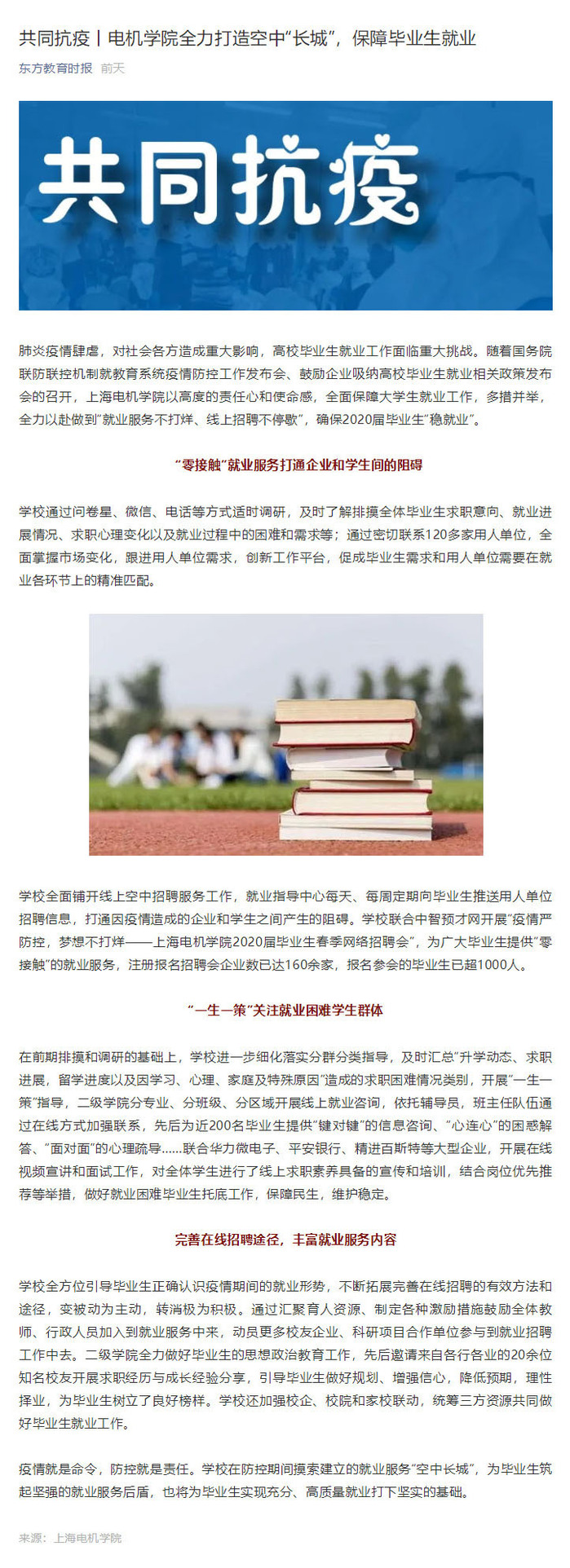 【东方教育时报】共同抗疫丨电机学院全力打造空中“长城”,保障毕业生就业