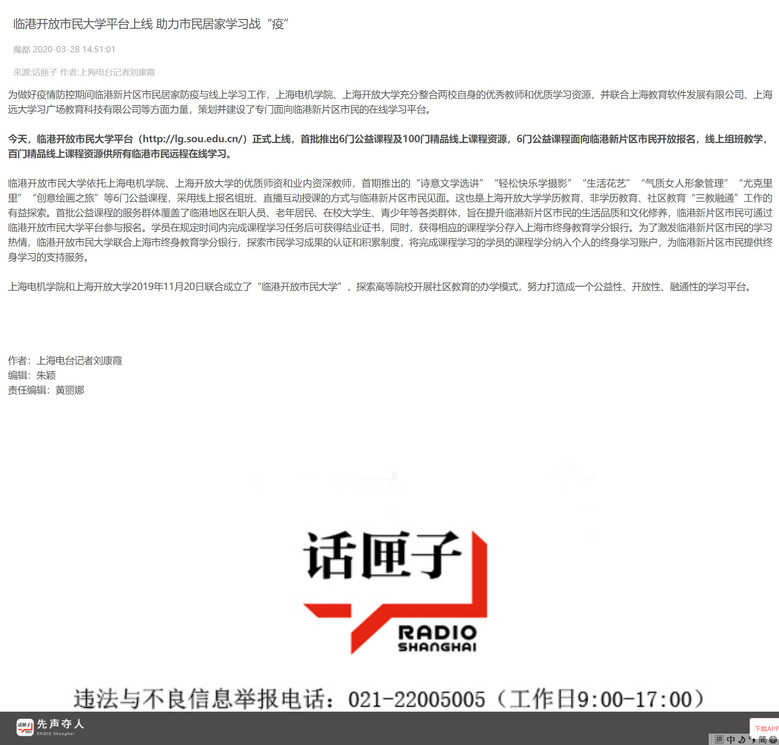【话匣子】临港开放市民大学平台上线 助力市民居家学习战“疫”