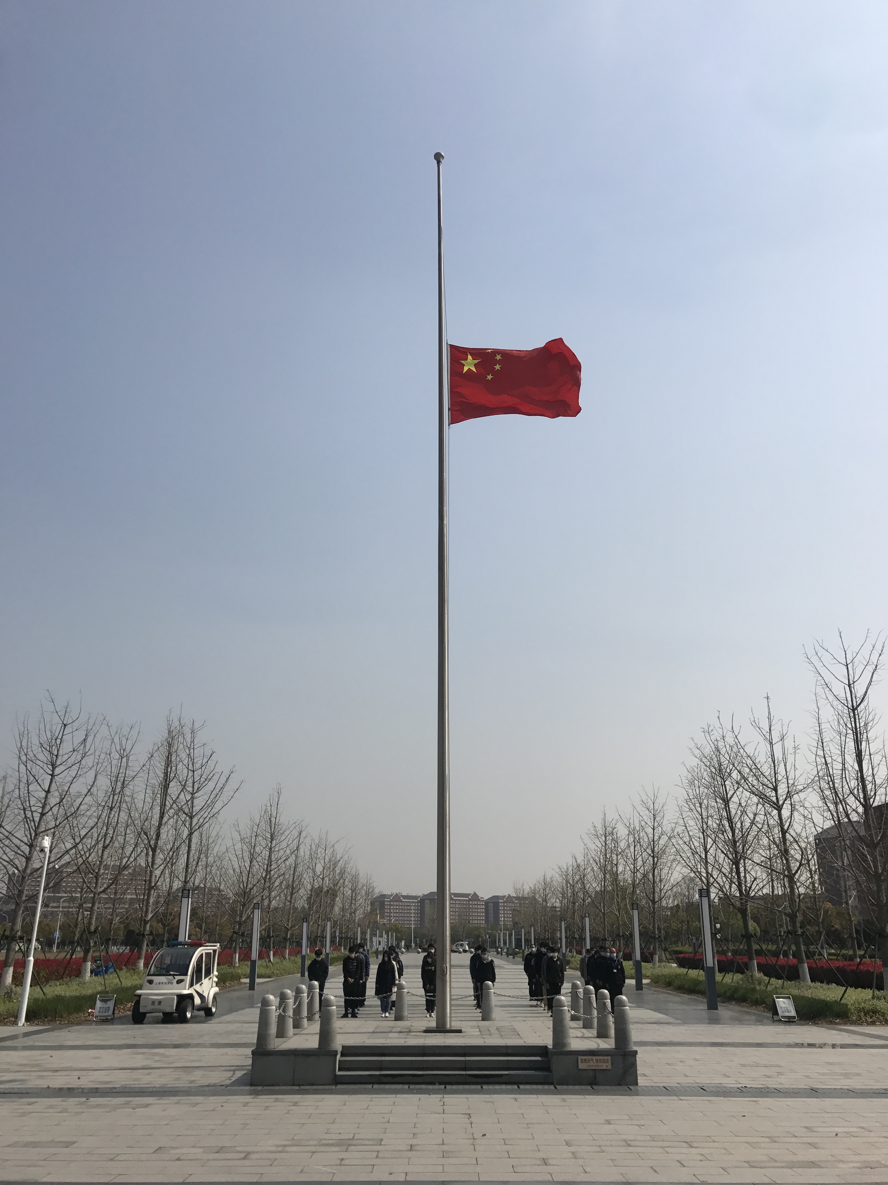 仪式上,来自商学院金融1713的徐海和工业工程1911的肖开提·艾尼代表留校学生升国旗、降半旗。随着10点防空警报的鸣响,全体默哀,用内心的深沉向新冠肺炎疫情中牺牲的烈士和逝去的同胞表达最诚挚的缅怀。哀思结束后,来自商学院金融1713的赵梦怡、国贸1621的郭明月与教师代表、材料学院辅导员程明杰,用文字向烈士致敬。一篇《春风作伴,衣锦还乡》——致敬疫情中牺牲的烈士中,一声声感谢、一句句走好,是电机青年们对于烈士和同胞们的不舍与感激。