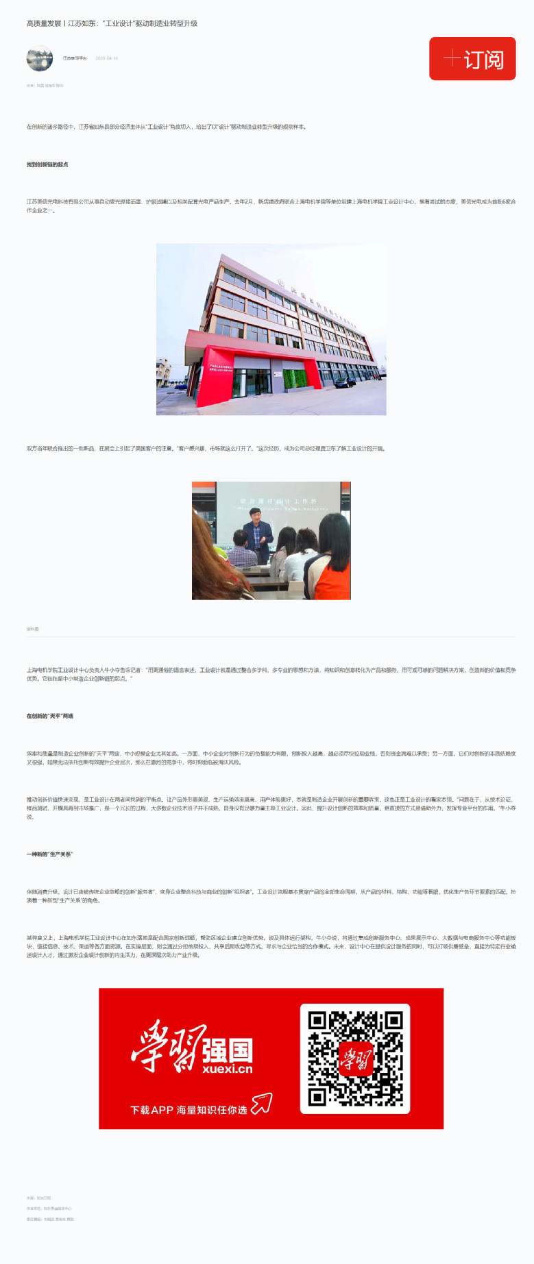 【学习强国】高质量发展丨江苏如东:“工业设计”驱动制造业转型升级