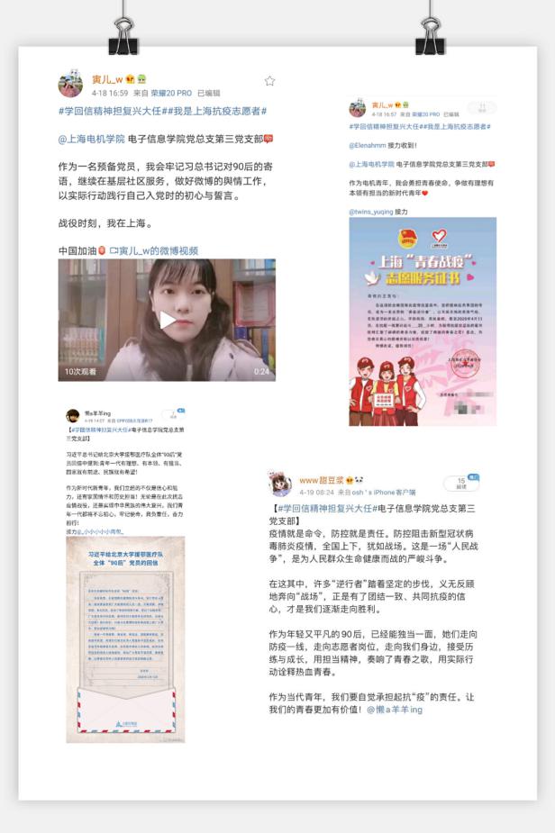 王寅怡作为一名预备党员,牢记习近平总书记对90后的寄语,继续在基层社区服务,做好微博的舆情工作,以实际行动践行自己入党时的初心与誓言。