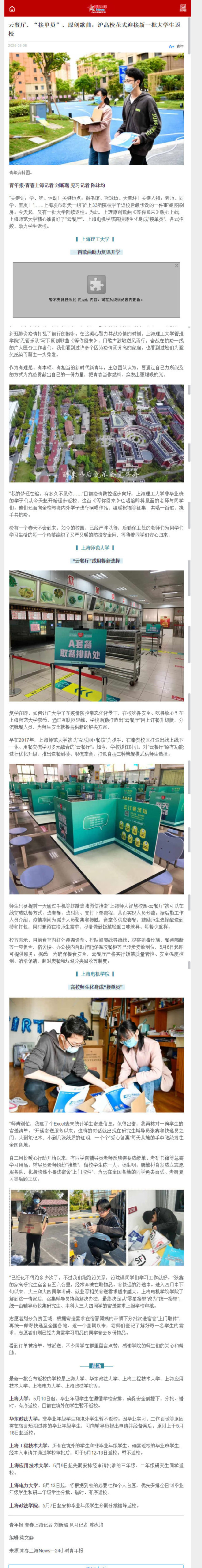 【青年报】云餐厅、“接单员”、原创歌曲,沪高校花式迎接新一批大学生返校