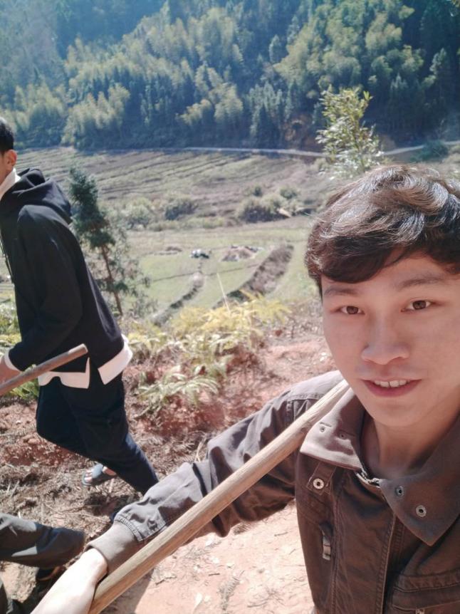 在这个漫长的假期里,除了上网课的电脑,陪伴新能源1611班符磊最多的就是一把锄头。耕地、栽种玉米、马铃薯、烟草,样样他都重新体验了一番。