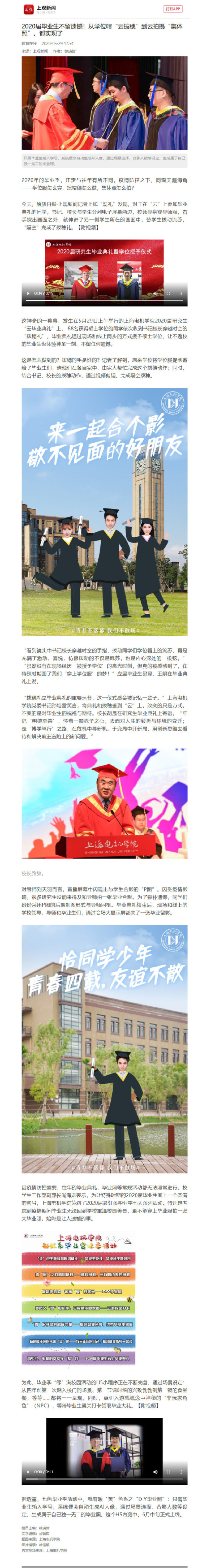 【上观】2020届毕业生不留遗憾!从学位帽“云拨穗”到云拍摄“集体照”,都实现了